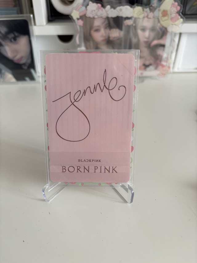 PC Officiel de Jennie de BLACKPINK provenant de l'album "Born Pink pink vinyl version" édition limitée , en bon état , a 2 défaut sur le coin ce qui est normal pour chaque carte provenant de cette album si.