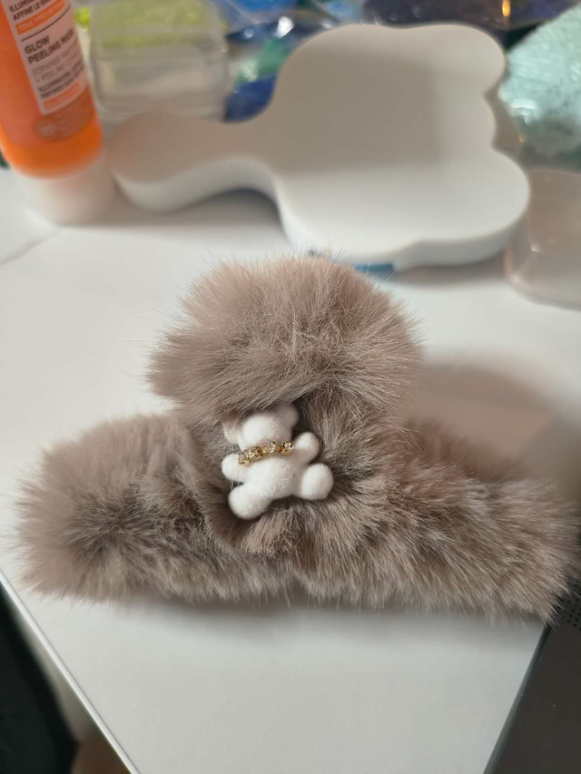 Pince requin pour cheveux en peluche, style coréen, motif ours, couleur marron clair.