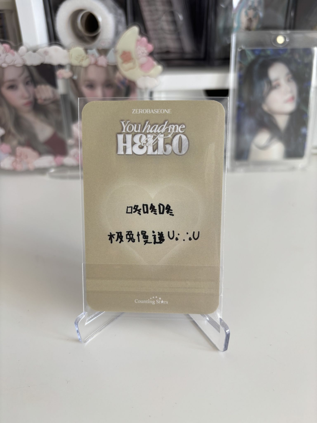 POB officiel de Hanyujin de ZB1 provenant de leur album "you had me at hello" du site counting star avec au dos une phrase "Toc toc toc, J&T la livraison tout en lenteur !" en chinois, en bon état